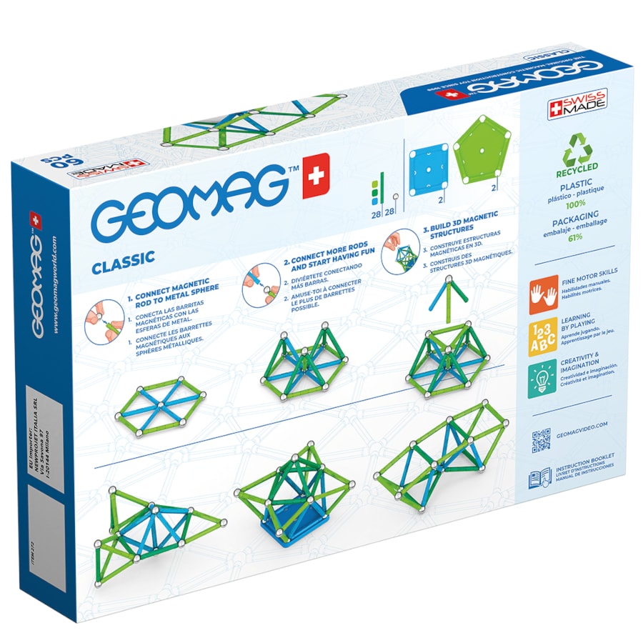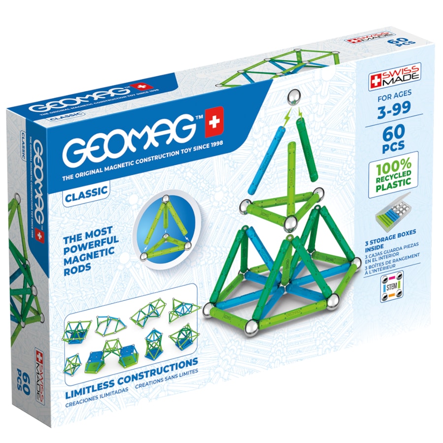 This is a classic version of the building kit. Includes 60 parts and 3 storage boxes. It is popular with young and old alike. Building sets Geomag can bring whole families or groups of friends together to play.