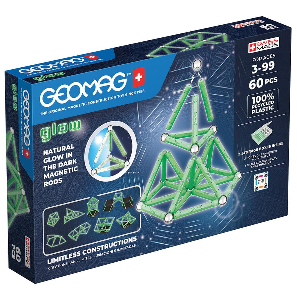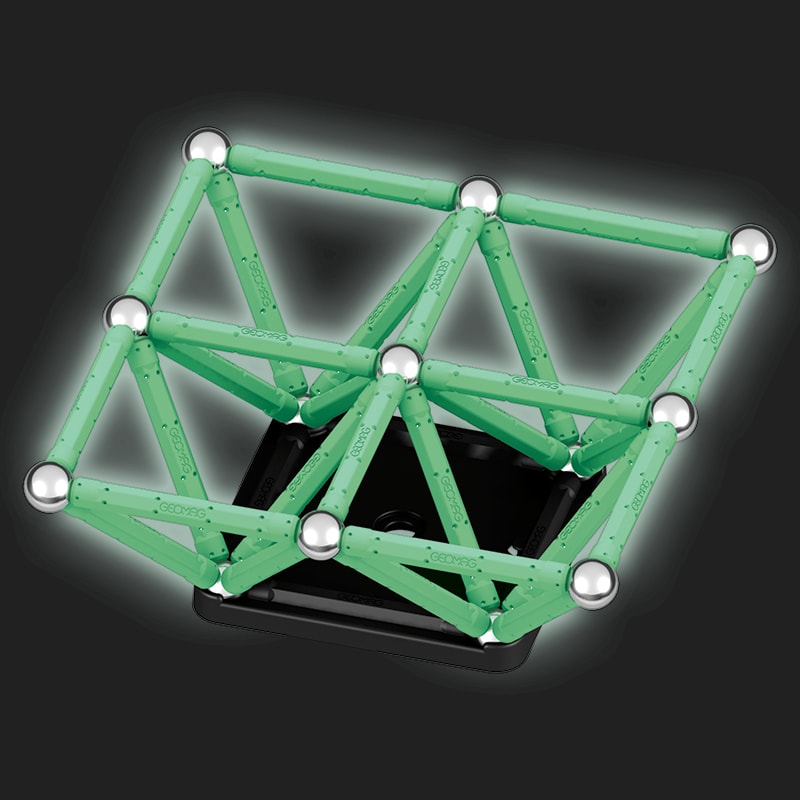 This is the Glow version, which glows in the dark. The building set contains up to 60 parts and 3 storage boxes. It is popular with young and old alike. Building sets Geomag can bring whole families or groups of friends together to play.