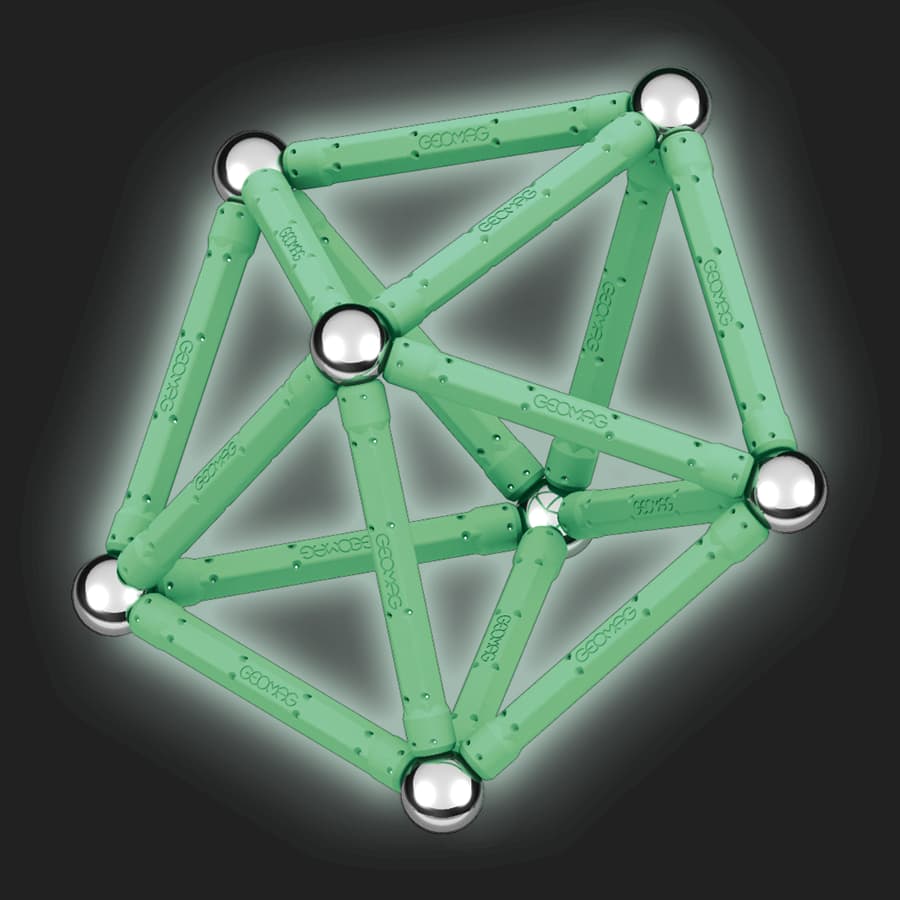 Building set Geomag Glow, recycled, 60 parts – glow-in-the-dark