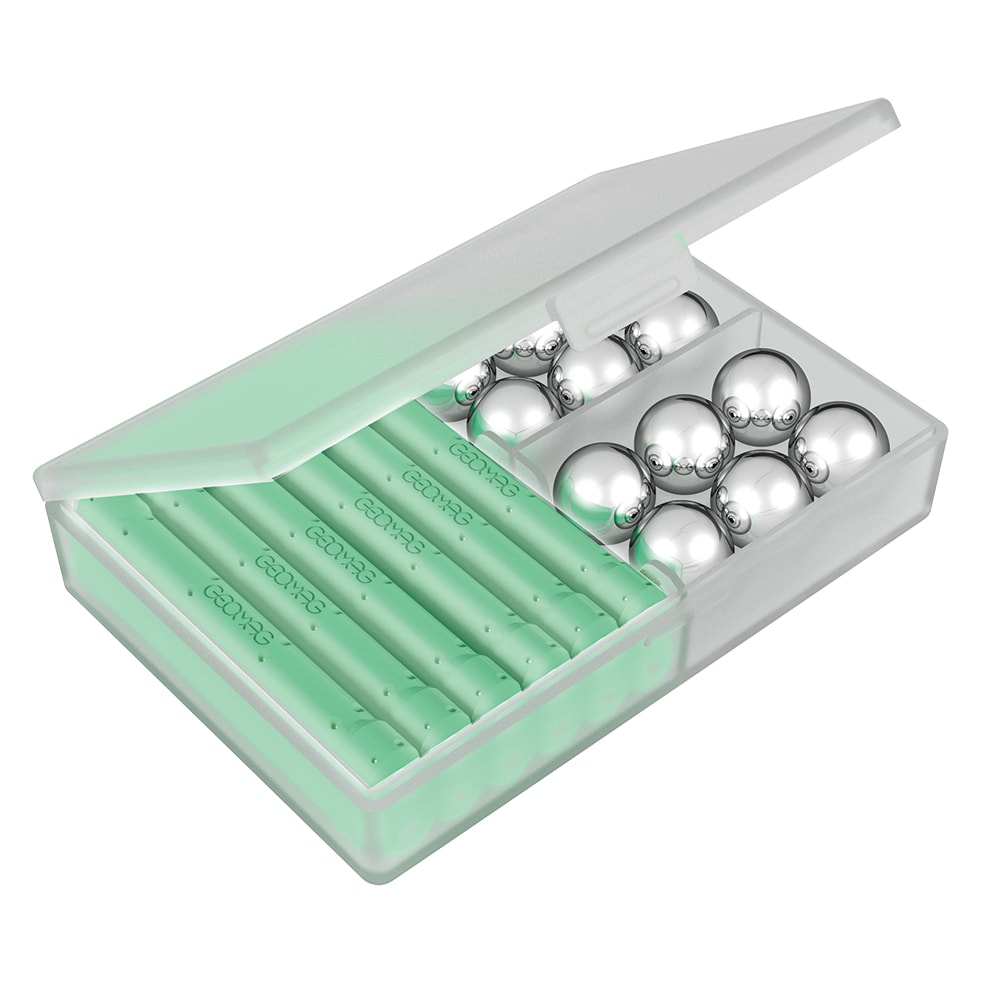 The Geomag storage box is a box in which you can neatly store the parts of the building kit. Building set Geomag Glow recycled, 60 parts contains up to 3 of these boxes. Each of them has a practical size, thanks to which you can easily take your favourite building set with you everywhere.