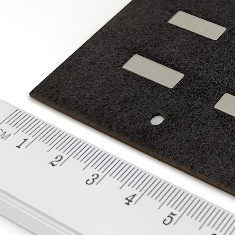 Clearance sale: Neodymium magnet, block, 15×5×0.5 mm, self-adhesive – N48 (old sticker, does not stick)