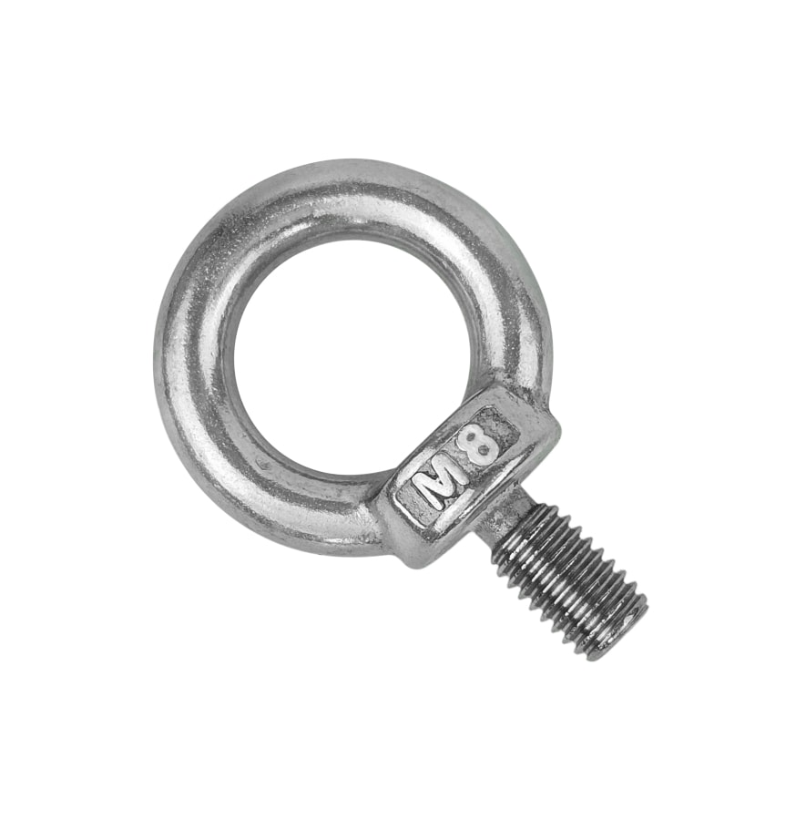 Hinged eyebolt with threaded stud M8. The eyebolt can be screwed into pot magnets with internal thread, with internal thread socket, or pot magnets with internal thread through entire magnet.