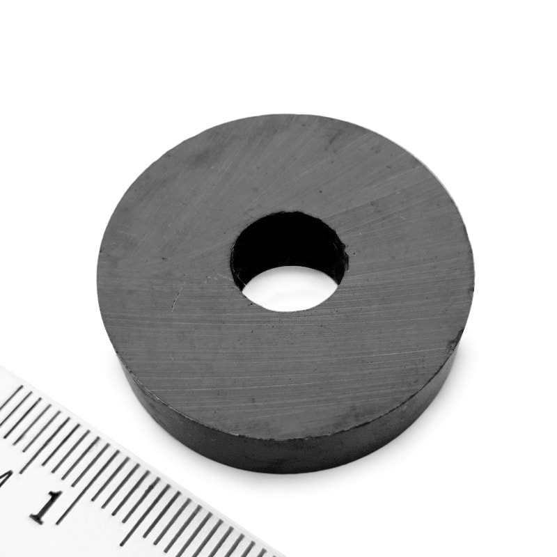 Ferrite magnet – 8 mm high disc with diameter of 30 mm and centre hole with diameter of 9 mm.