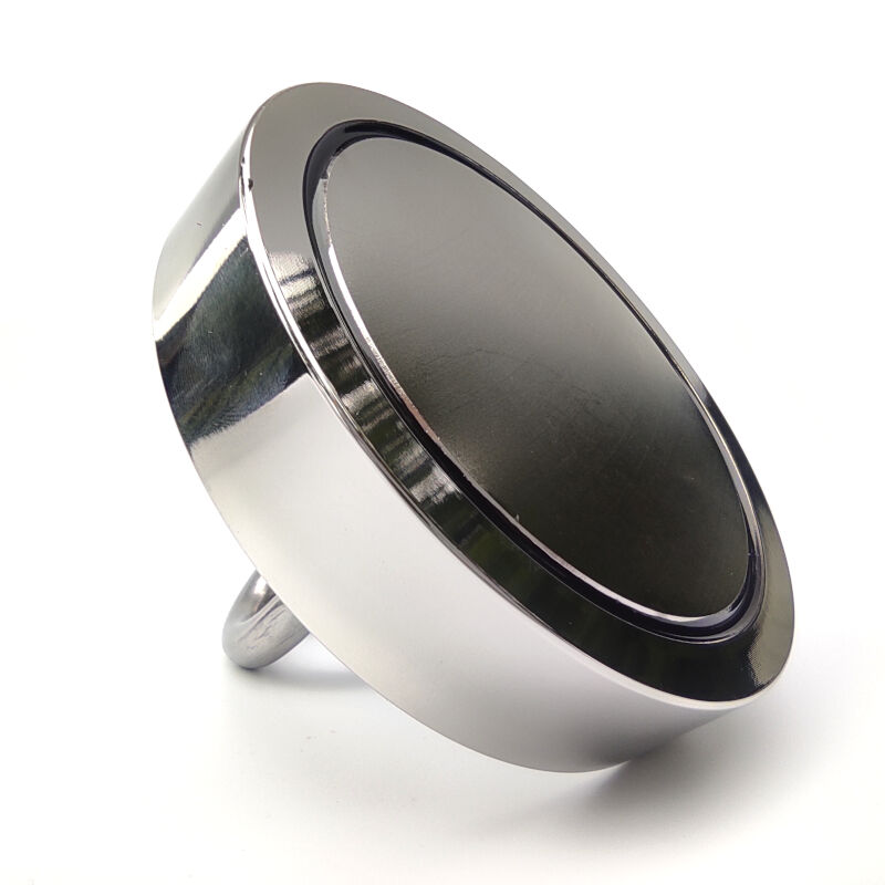 Magnet with a screwed-in eyebolt for attaching a rope, offering a strength of 530 kg, ideal for treasure hunting.