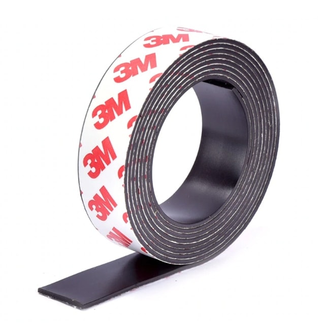 Magnetic adhesive tape has a magnetic and adhesive side. The magnetic side is attached to the metal. On the adhesive side is M3 adhesive, which is designed for a wide variety of materials and applications that require strong bonds. On the magnetic side, the north and south poles alternate every millimetre.