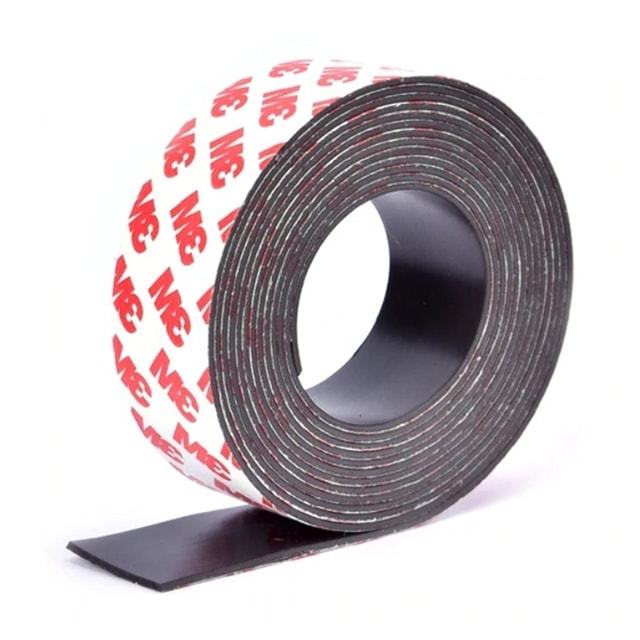 Magnetic adhesive tape has a magnetic and adhesive side. The magnetic side is attached to the metal. On the adhesive side is M3 adhesive, which is designed for a wide variety of materials and applications that require strong bonds. On the magnetic side, the north and south poles alternate every millimetre.