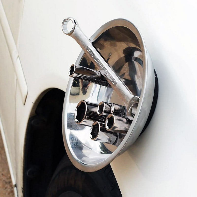The magnetic bowl is used for storing small metal objects, nails, nuts, bolts and washers. The integrated magnet allows the tray to be fixed in a horizontal or vertical position. The diameter of the bowl is 10.7 cm.