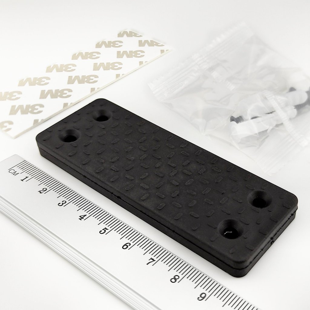 The magnetic holder is all rubber coated. Rubber coating protects the objects you want to mount with it from scratches. The magnet can be placed almost anywhere, for example on a wall, door, under a desk, in a cupboard, in a safe or in a car. It can also be used to hang decorations on the wall, such as swords, axes, shields, crossbows or rifles. For heavy objects, the use of multiple magnets is recommended. Package includes a rubber-coated magnet, 4 black self-tapping screws, 4 dowels and an adhesive backing (used only for testing mounting locations, not for permanent mounting).
