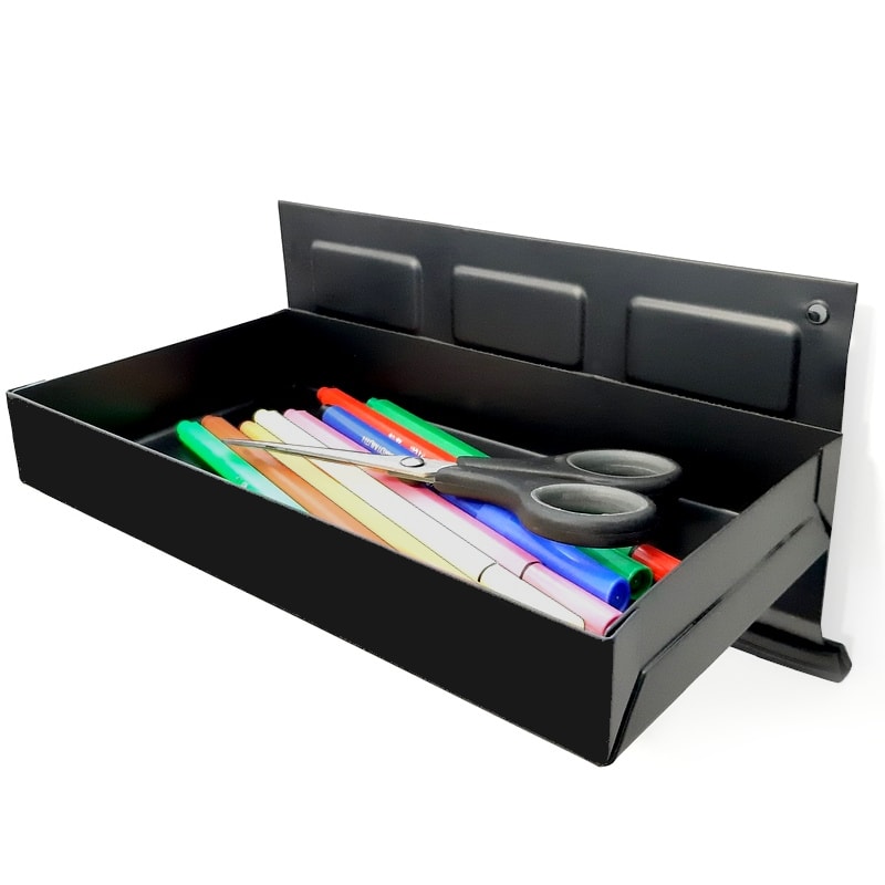 The magnetic shelf will serve well for storing nails, nuts, screws, scissors, crayons or many other items. Thanks to the ferrite magnets, mounting it on metal objects is quite simple – just attach it to them and that’s it. So a new shelf can appear on your fridge or your metal workbench in no time.
