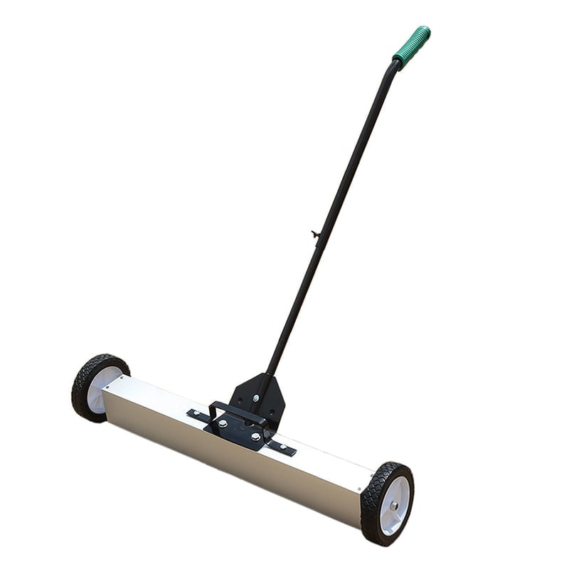 The magnetic sweeper is used for collecting nails, screws, staples, wires, metal filings and other metal objects, for example in the workshop, production halls or in a car park. It can also sweep away fine metal dust from joints and creases.