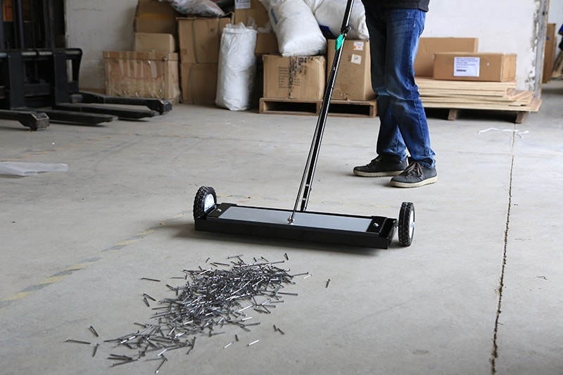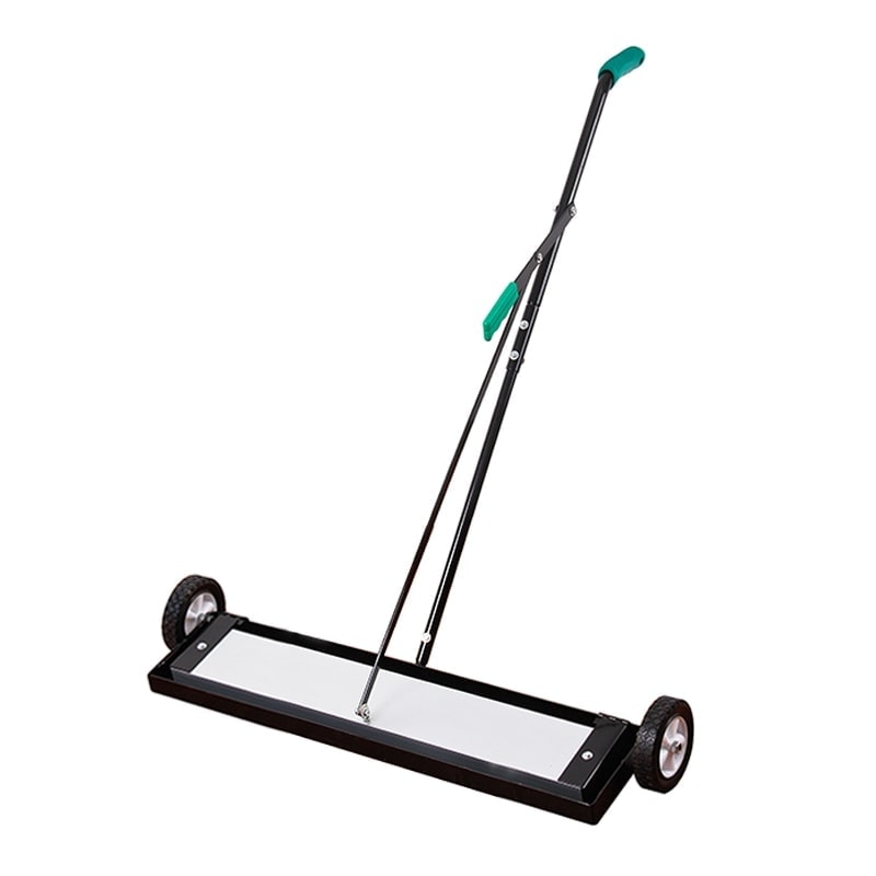 The magnetic sweeper is used for picking up nails, screws, staples, wires, metal filings and other metal debris, for example in the workshop, production halls, pavements or in a car park. It can also sweep away fine metal dust from joints and creases.