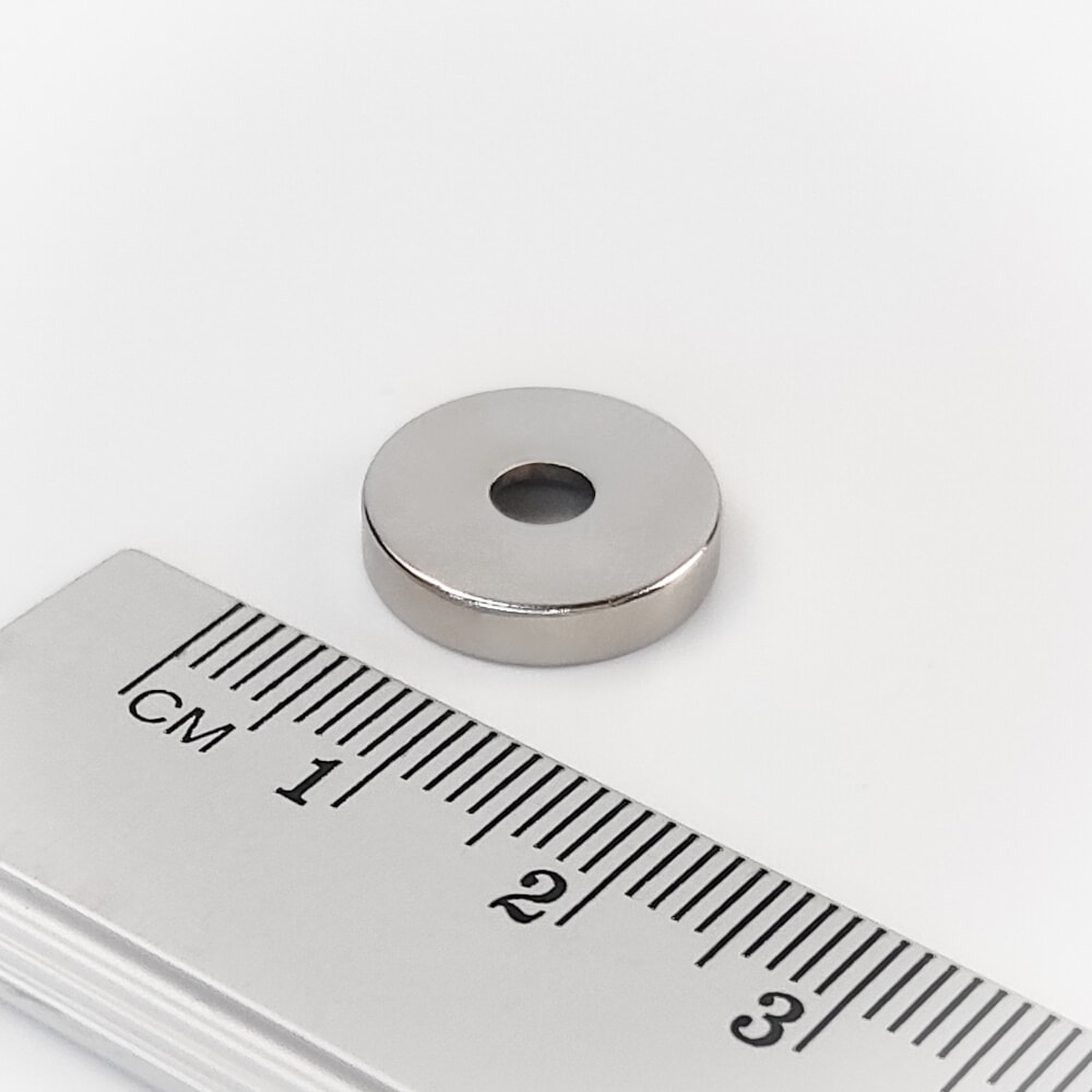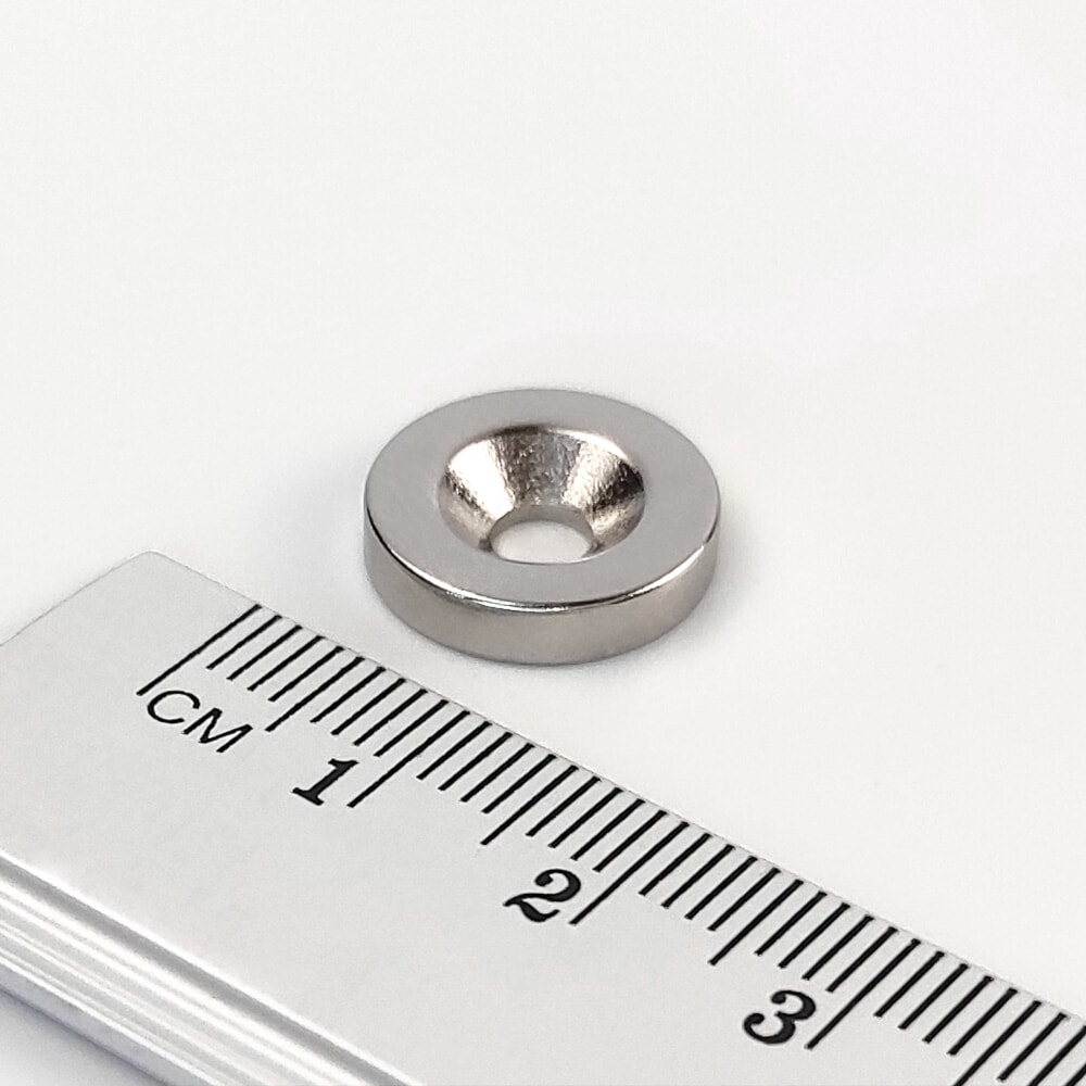 Neodymium magnet, disc, 14×3 mm, with hole M4 (south pole on the countersunk side) – N38
