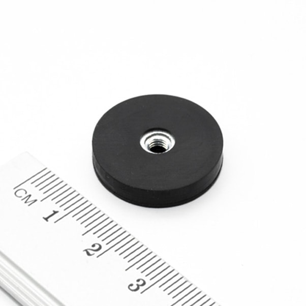 Pot magnet with internal thread, 22×6 mm, rubber coated