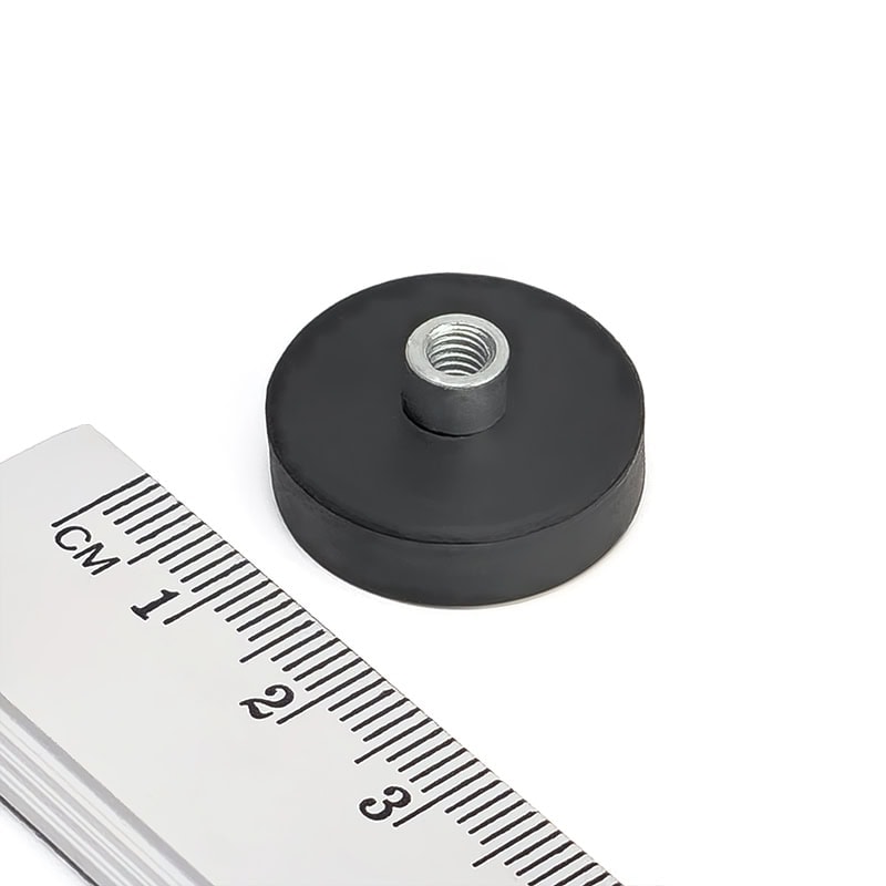 Pot magnet with internal thread socket, 22×6 mm, rubber coated