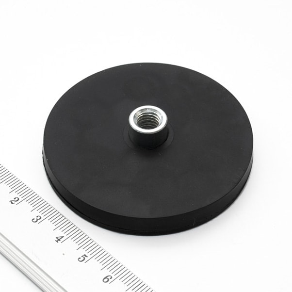 Pot magnet with internal thread socket, 66×8.5 mm, rubber coated