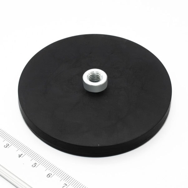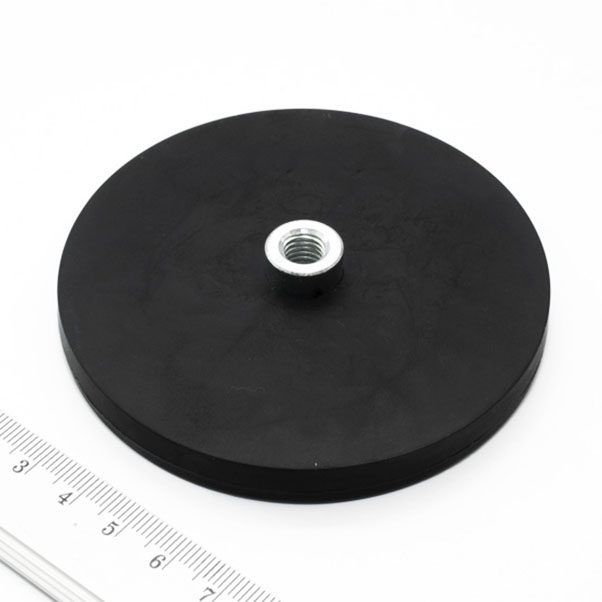 Pot magnet with internal thread socket, 88×8.5 mm, rubber coated