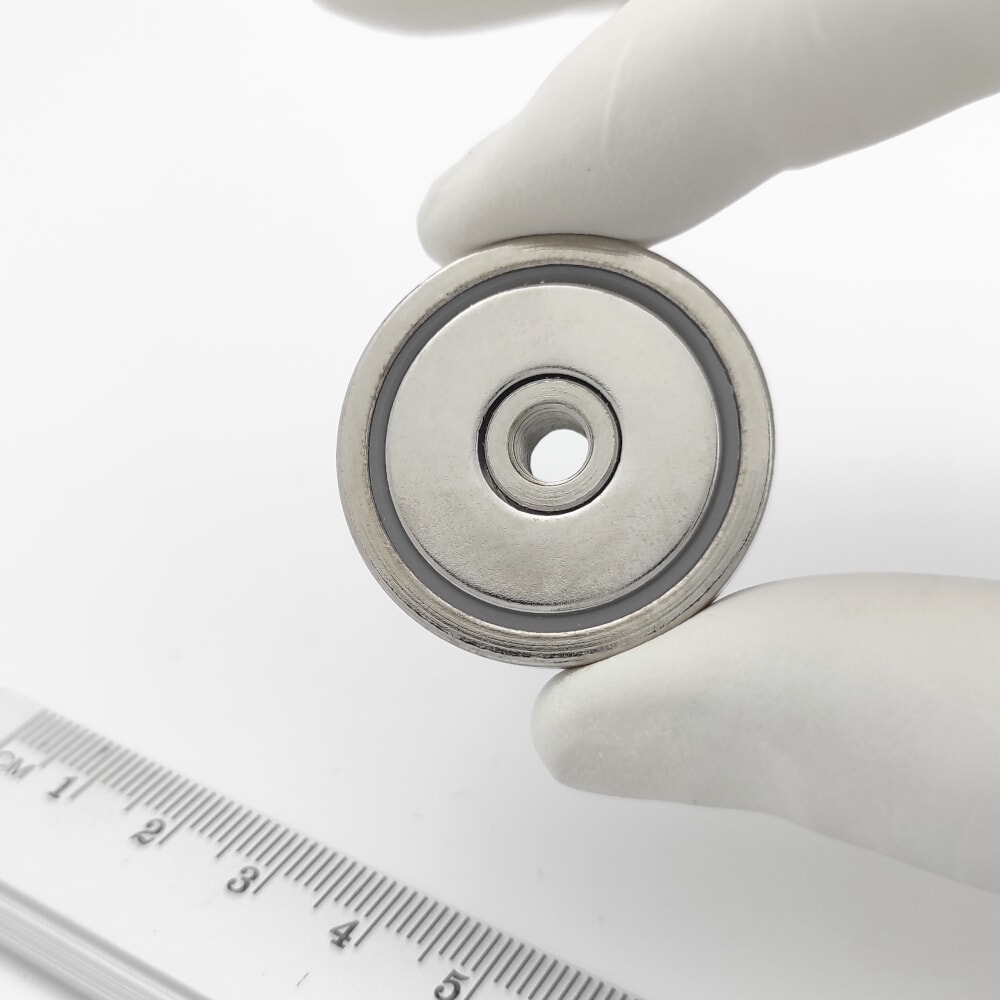 Pot magnet with internal thread through entire magnet, 32×8 mm
