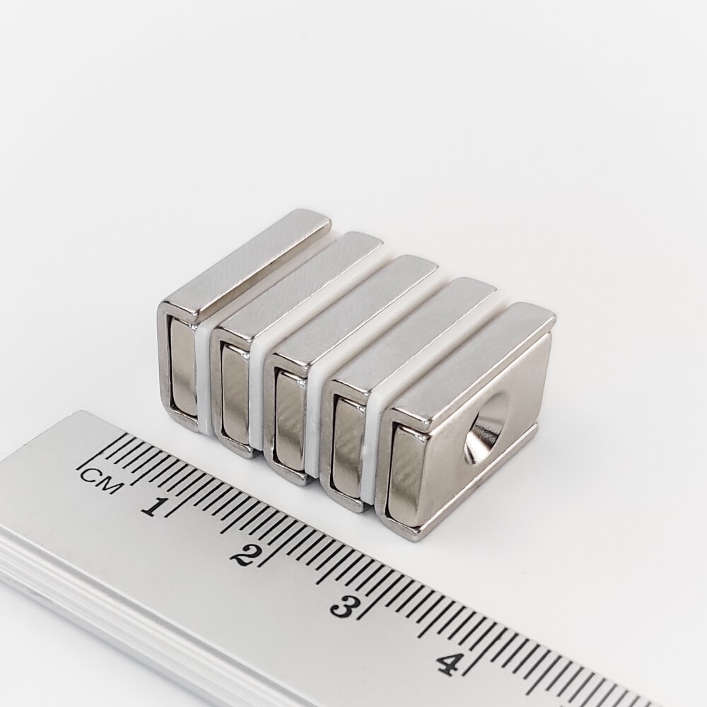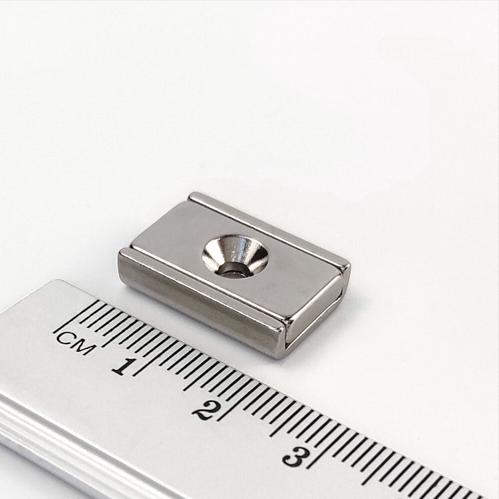 Magnetic mount with M3 screw hole. The mount consists of a neodymium magnet and a steel pot that concentrates the magnetic force into a small space on one side of the magnet. Thanks to this, the mount can also hold heavier objects and is suitable as both a vertical and horizontal holder. Since all the magnetism is concentrated on the surface of the active side of the mount, the force drops off sharply with distance and the mounts have almost no effect on more distant objects. The back of the mount is only very weakly magnetic.