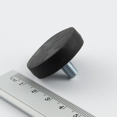 Pot magnet with threaded stud, 31×6 mm, rubber coated, M6