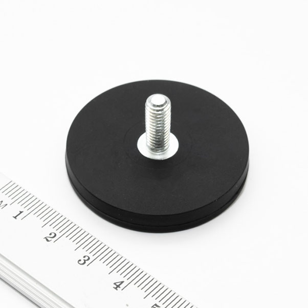 Pot magnet with threaded stud, 43×6 mm, rubber coated, M6