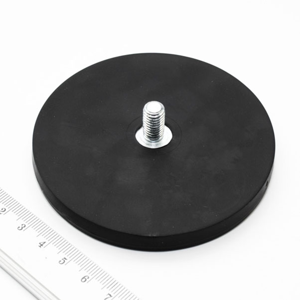 Pot magnet with threaded stud, 88×8.5 mm, rubber coated
