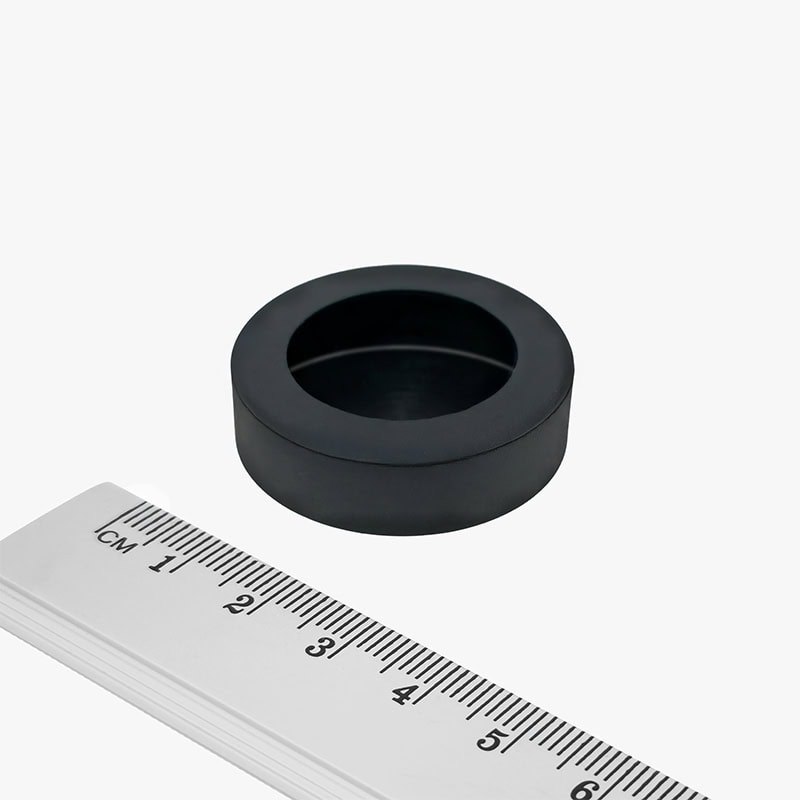 The rubber cap is suitable for the underside of magnets, threaded magnets, hooks or mounts with a diameter of 32 mm as protection against scratching of more sensitive surfaces or to increase friction. By increasing the friction, the anti-shear force of the magnets will also increase. The pulling force of the magnets is slightly reduced as the rubber widens the gap between the magnet and the attracted object.