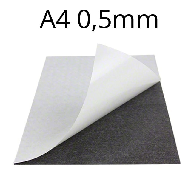 Magnetic self-adhesive sheets bring a number of advantages. They are perfectly usable especially for advertising, promotional or decorative purposes. The excellent properties of the self-adhesive magnetic sheet will be used not only in the office, but also at home, especially if you have little naughty ones running around your home. You can use the whole A4 magnetic self-adhesive sheet with a thickness of 0.5 mm or cut out the desired size or different shapes using scissors. These can then be used as original and playful fridge magnets, which especially children will appreciate. The magnetic self-adhesive sheet features strong adhesion, yet it is very easy to apply as well as to remove again. The visible magnetic side is dark grey to black. The self-adhesive magnetic sheet must be applied and pressed onto a suitable surface and left to rest for a while. Otherwise, air bubbles may appear and the sheet may peel off.
