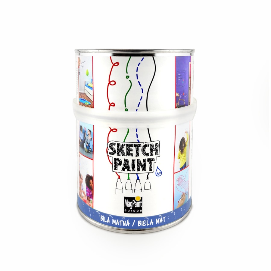 SketchPaint is a 2-component water-based paint. The paint is odourless and suitable for interior use. It is writable with whiteboard markers. Warning: do not use permanent markers.