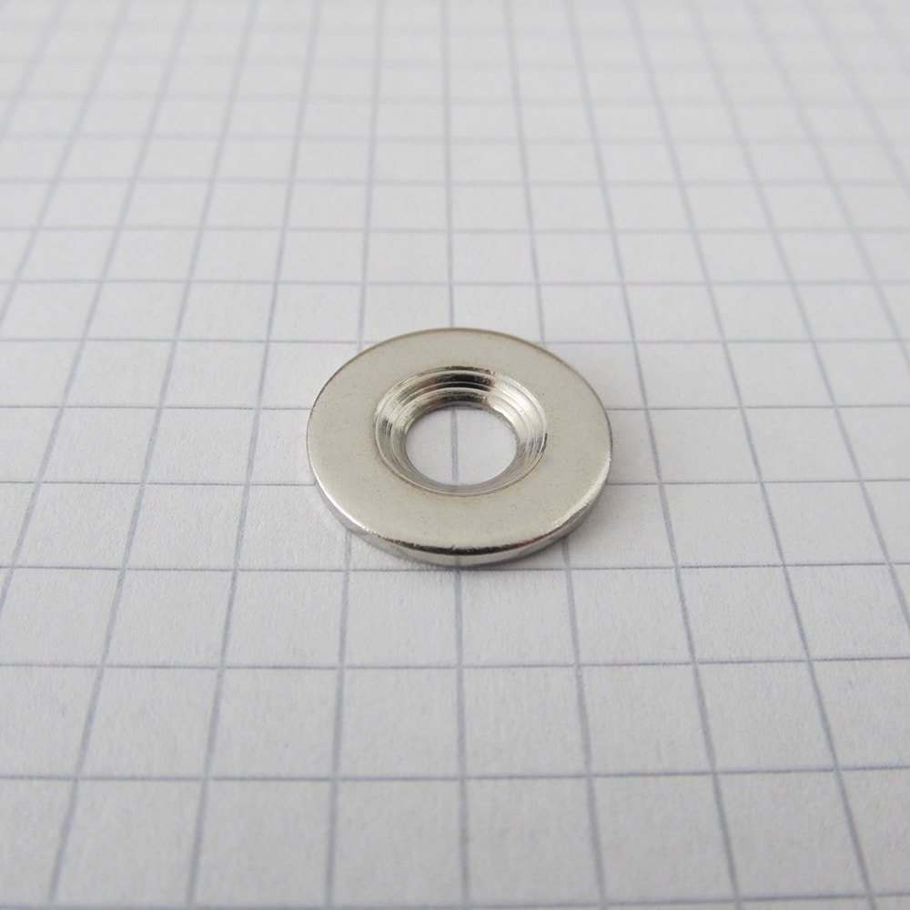 Steel counterpart with screw hole. The disc is not a magnet, but is attracted to magnets.
