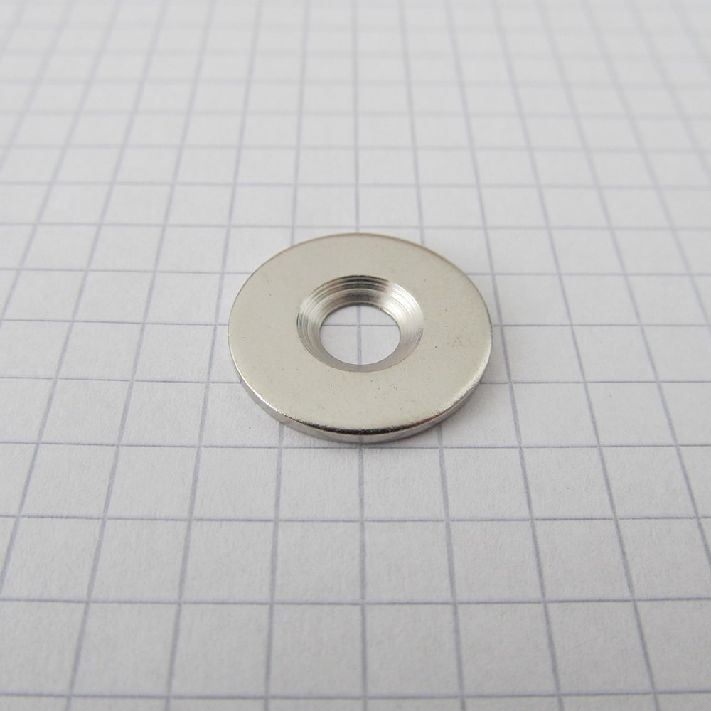 Steel counterpart with screw hole. The disc is not a magnet, but is attracted to magnets.