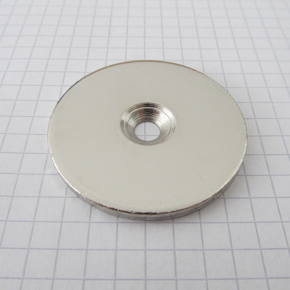 Steel counterpart with screw hole. The disc is not a magnet, but is attracted to magnets.